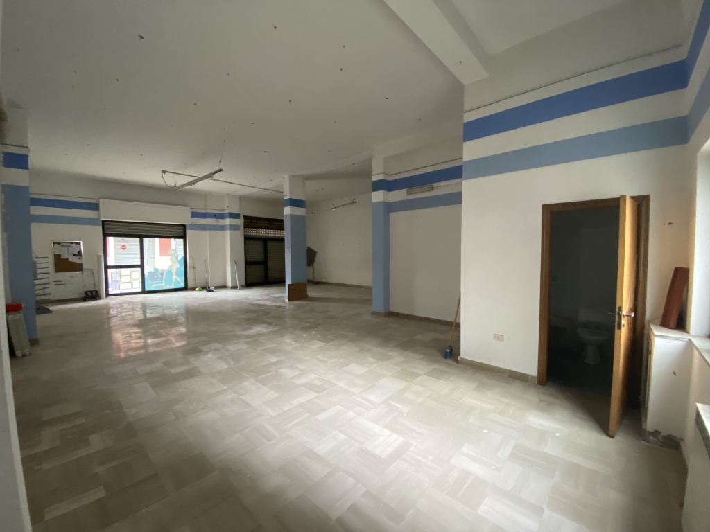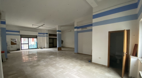 Locale commerciale con 2 ingressi, di 110 mq , composto da un unico vano con bagno. Munito di serranda elettrica.